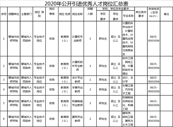 1-3.2020年聊城市技师学院公开引进优秀人才应聘须知
