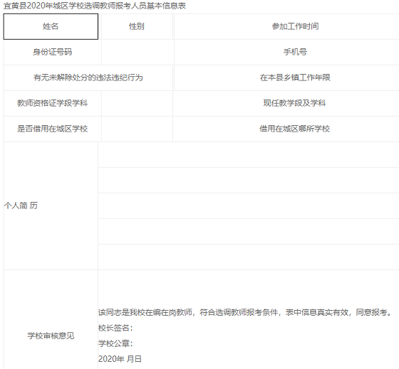 附件:宜黄县2020年城区学校选调教师报考人员基本信息表