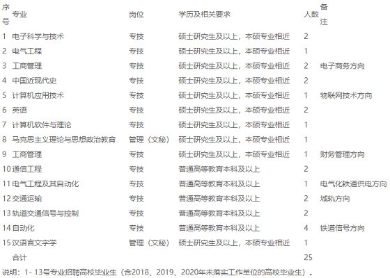 附件:洛阳铁路信息工程学校2020年公开招聘工作人员一览表