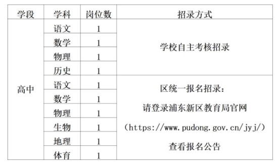 硕士研究生及以上学历,同时须具有相应学位;须符合《2026年浦东新区公办学校教师招聘办法》中规定的其他相关要求。