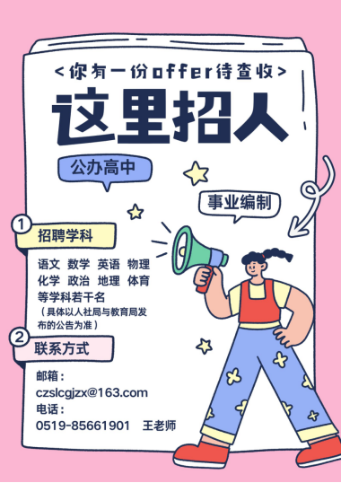 简历投递:有意者请将简历命名为“岗位+姓名”发送至学校邮箱czslcgjzx@163.com