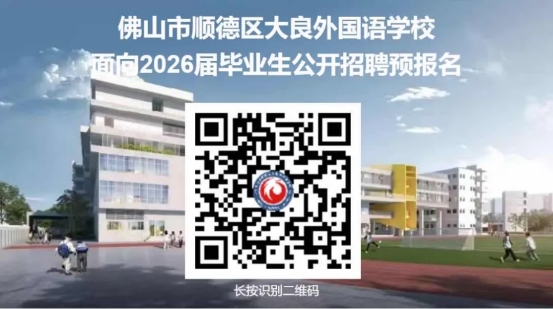 相关应聘者及有意向人员请扫码填报个人信息,本链接仅作为佛山市顺德区大良外国语学校面向2026届高校毕业生预招聘教师意向人员信息登记方式,以便联系沟通。