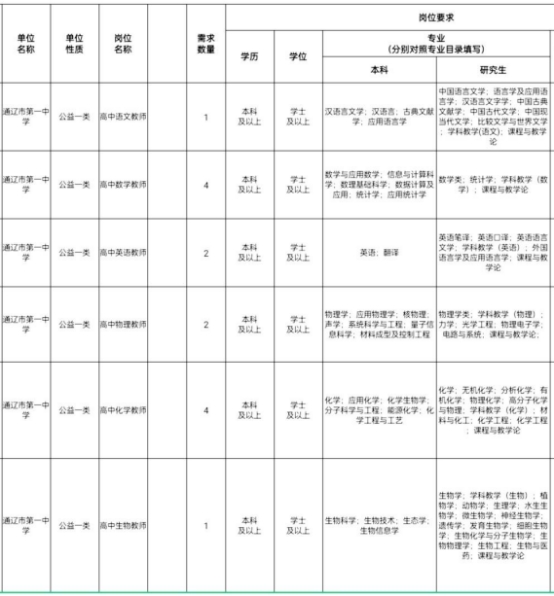 学科任课教师:语文、数学、英语、物理、化学、生物、政治、体育。详细信息请见附件1《通辽市第一中学2026年人才引进计划表》。